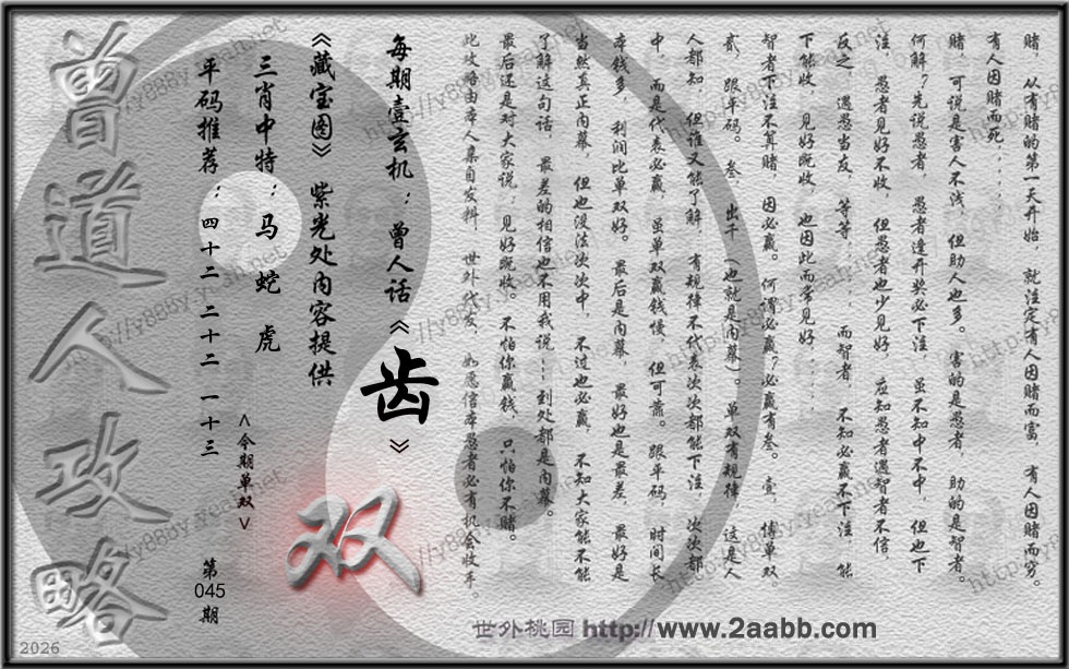 通知:045期香港开奖时间为04月25日 星期六--互相转告 |